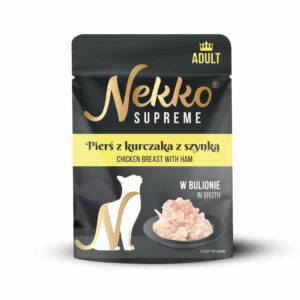 NEKKO SUPREME Adult Pierś z Kurczaka z Szynką w bulionie to smakowita karma uzupełniająca, która wzbogaci codzienną dietę Twojego pupila i pomoże mu pozostać aktywnym.